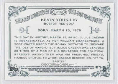Today is my favorite player Kevin Youkilis' birthday. I hope he has a happy birthday, and thought that this card was appropriate to show on his birthday.